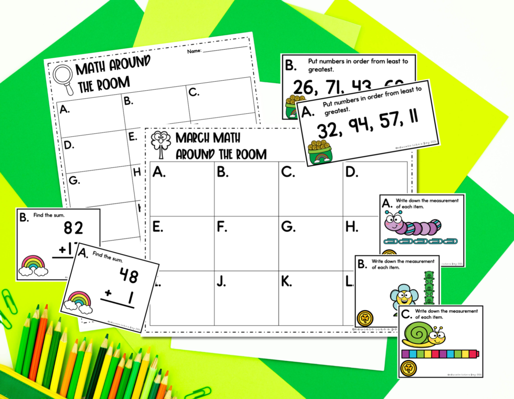 Incorporating activities like write the room centers or “scoot” task cards is a great way to get students moving around the room while reviewing a concept. These math around the room task cards are the perfect example of an easy way to keep students learning while getting them up and moving. Use them as a small group write the room center or whole group where students “scoot” around the room answering each task card. Grab them here!